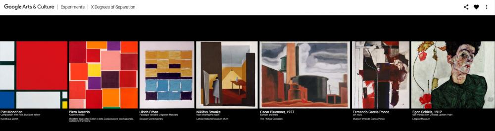 Google Arts & Culture çatısı altında geliştirilen X Degrees of Separation, herkesin çevresindeki insanları kullanarak 6 basamakta dünyadaki herkese ulaşabileceğini iddia eden Six Degrees of Separation fikrinden yola çıkıyor. Görsel tanıma teknolojisini kullanan çalışma iki sanat eserini arasındaki akım geçişini 6 basamakta haritalıyor.
