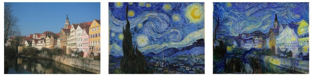 Derin öğrenmeyi kullanarak taslak olarak verilen görseldeki çizim tekniğini farklı görsellere aktarmak -popüler ismiyle stil transferi- yapay zekanın birleştirmeyle ortaya çıkardığı işlere en basit ve anlaşılabilir örnek oluyor. Hatta Deepart.io adresi üzerinden dileyen herkes kendi eserini yapabiliyor.