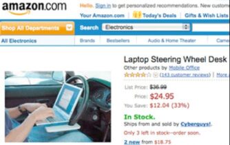 Olcayto‘dan gördüm. Amazon‘da araba direksiyonuna takılan ve laptop, defter, kağıt, kalem koymanızı sağlayacak minik masa aparat satılıyormuş. 203 yorum almış