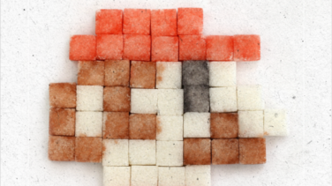 Tasarımcı Orçun Şenbel’in şeker küplerinden yapıp fotoğrafladığı piksel karakterler.