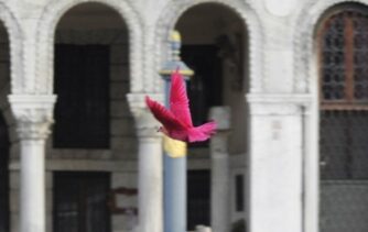İki yılda bir gerçekleştirilen Venedik Bianeli için San Marco Meydanı’na akın edenler, bugünlerde civarda uçuşan boyalı güvercinlerle karşılaşıyor. İsviçreli ressam
