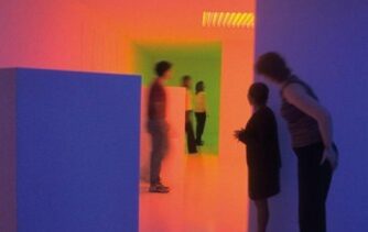 Carlos Cruz-Diez’in yüksek satürasyon değerindeki renklerle sanat çalışmaları yapıyor.