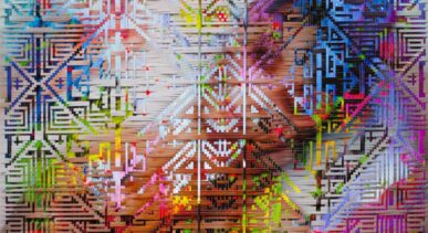 Lala Abaddon’ın girift desenli dokumaları, büyük ölçekli fotoğrafların şeritler halinde kesilip dokuma yapar gibi birleştirilmesinden oluşuyor.