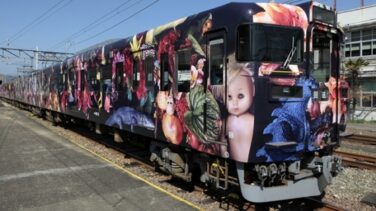 Çin’de her yıl gerçekleşen tasarım etkinliği için Japon sanatçı adayı şehre bağlayan treni kendi eseriyle boyadı.