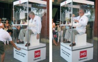 Multiple Sclerosis Society‘nin bilinirliğini arttırmak ve bağış toplamak için canlı bir gerilla yapıldı. Sokağa kurulan mini araştırma labaratuarına, tepkisiz bir