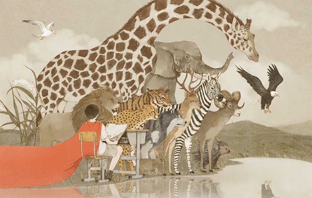 Çinli illüstratör Jin Xingye’nin çocuklar için hazırladığı hikaye kitabı illüstrasyonları, hepimizin özlemini çektiği doğayla bağ kurma anlarını tasvir ediyor. İllüstrasyonlardaki insanlar da doğa da -hatta bazen otobüs, ev, tren yolu gibi modern yaşama özgü unsurlar da- gerçeküstü kompozisyonlarda birbiriyle ilişkilendirilmiş.