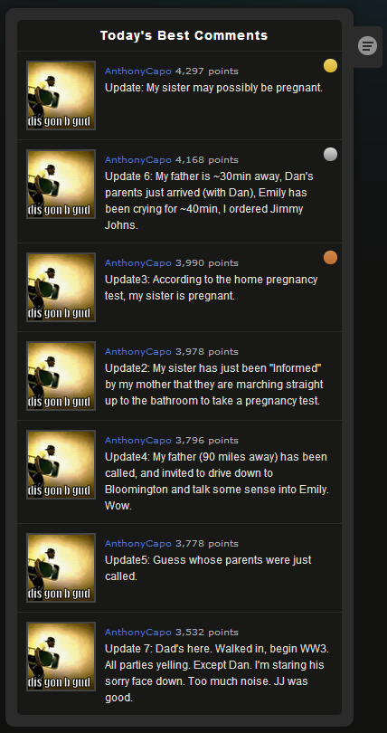 Kız kardeşi hamile olan AnthonyCapo rumuzlu kullanıcının koyduğu bir fotoğraf altına yaptığı güncellemeler Imgur’un en çok takip edilen konuları arasında yer aldı.