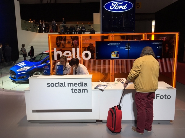 Standlara genel olarak baktığımızda artık araçların platformları, ışıklandırmaları öyle mükemmele yakın ve birbirleriyle aynı ki, öne çıkan bir tanesini yakalamak çok zor. Fakat ufak tefek yenilikleri elbette yakaladım ve sizinle paylaşmak istiyorum. Örneğin Ford’un sosyal medya takımı için bir masa açması, otomobil fuarları için yeni bir yaklaşım. Böylece ürünlerle ilgilenen müşteri ile sosyal medya odaklı fuar ziyaretçisine ayrı masalardan temas etme fırsatı yakalamışlar.
