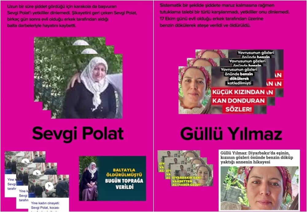 Her ay düzenli olarak rapor yayınlayan platform Ekim ayında 36 kadının Eylül ayında 53 kadının Kasım ayında ise en az 39 kadının, erkekler tarafından öldürüldüğünü bildirdi. 2019’da sesine kulak verilmeyen yardım çığlığı hiç duyulmayan 430 kadın erkek şiddeti ile öldürüldü.