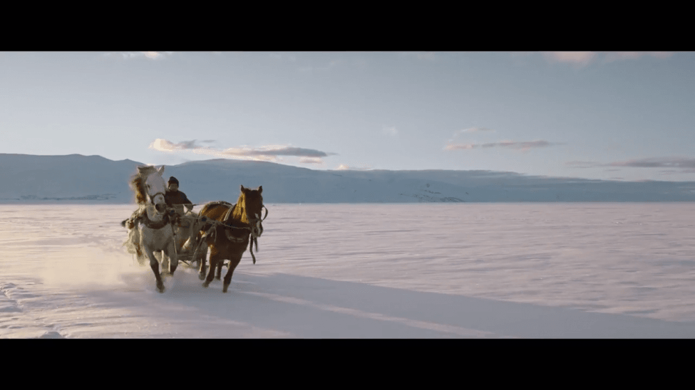 -23°C’ye ulaşan zorlu hava koşullarında çekimi yapılan “Köy Yolları” isimli film, karlar altındaki bölgenin görkemli güzelliğini çok güçlü bir görsellikle ekrana taşıyor. Çıldır gölü üzerinde koşan atlar, karları küremeye çalışan köylüler, bembeyazlar içinde ilerleyen sarı Lipton kamyonu, çay başında gülümseyen köy ahalisi… Filmin planları tek tek, kare kare incelendiğinde bile nefis, film tüm detaylarıyla görsel olarak gerçekten etkileyici görünüyor.
