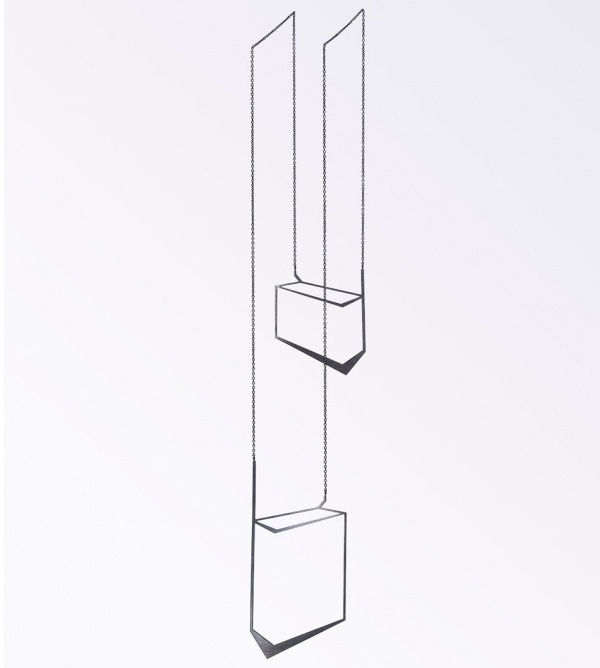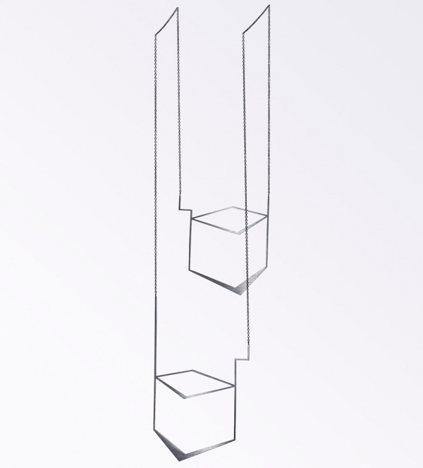 Yunan sanatçı Eleftheria Stamati’nin “The Mechanics of Black” (Siyahın Mekaniği) isimli kolye koleksiyonu, perspektif oyunuyla 3 boyutluymuş izlenimi veren 2 boyutlu metal kolyelerden oluşuyor. İncecik metal ile yaratılan 2 boyutlu formlar, bir kalemle çizilmiş kadar kadar ince ve kibar.