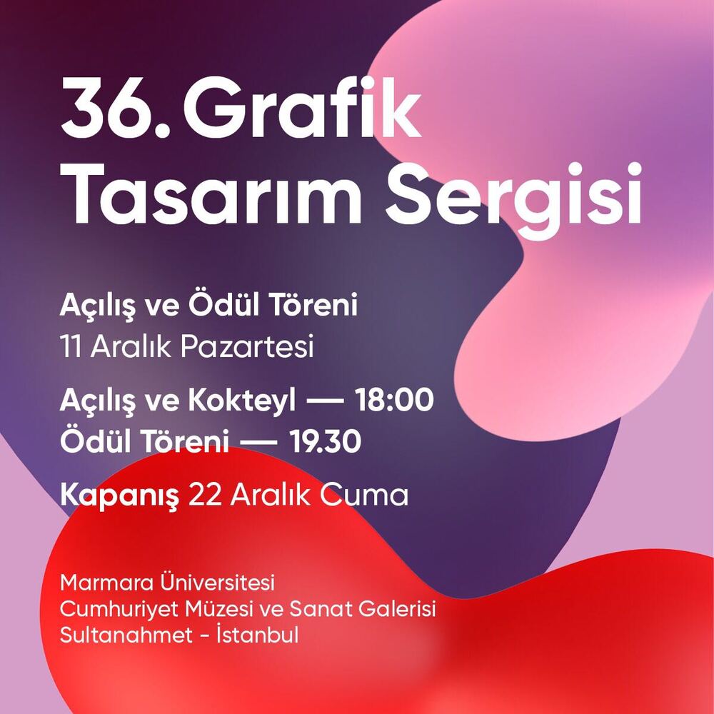 36. Grafik Tasarım Sergisi 22 Aralık 2017 tarihine dek, Pazartesi hariç her gün 10:00-17:00 saatleri arasında görülebilecek. Sergi ücretsiz şekilde, Marmara Üniversitesi Cumhuriyet Müzesi ve Sanat Galerisi’nde gezilebilir.