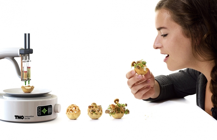 Hollandalı gıda ve konsept tasarımcı Chloé Rutzerveld, 3 boyutlu baskıyla doğal olarak yetişen besinlere yönelik bir proje yürütüyor. Edible Growth isimli çalışmasında teknolojiyle gıda endüstrisini birleştirerek modern dünya düzenini doğa lehine kullanıyor. Konsept temelinde 3 boyutlu baskıyla yapılan dış iskelet niteliğindeki saksı ve içine yerleştirilen tohumlu topraktan oluşuyor.