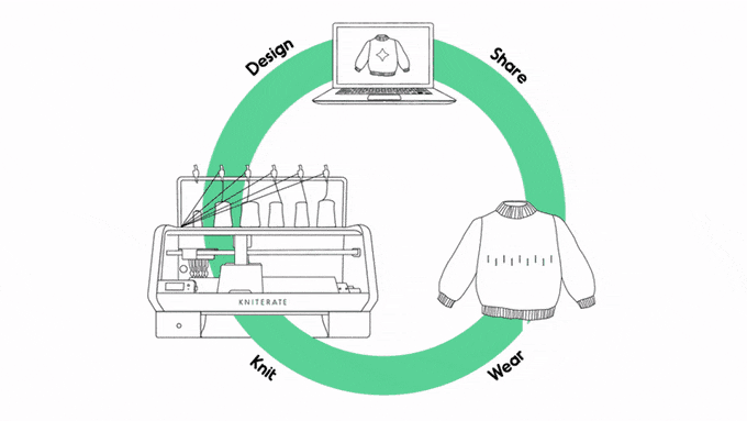 Endüstriyel örme makinelerine kıyasla ekonomik ve kompakt bir alternatif olarak tasarlanmış olan Kniterate, bilgisayar ortamında çalışan uygulaması aracılığıyla bireysel giysi tasarımının ve bireysel giysi üretiminin önünü açıyor. Giyim alanında tasarım deneyimi olmayanlar dahi makineyi kullanabiliyor ve uygulamayla sunulan geniş desen yelpazesinden faydalanarak profesyonel kalitede üretim yapabiliyor.