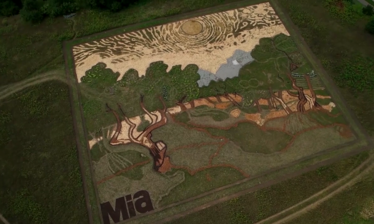 Sanatçı Stan Herd, Minneapolis Sanat Enstitüsü için yaptığı çalışmada, yakınlardaki Minneapolis St-Paul Havaalanı’na inen uçakların havadan görebileceği bir yeryüzü tablosuna imza atmış.