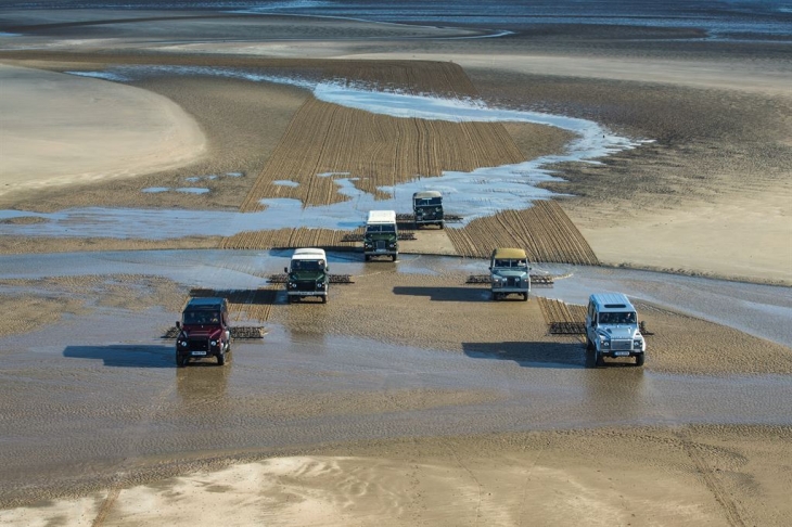 Bu yıl da Jaguar Land Rover, tarihin tekerrür etmesini sağlayarak aynı çizimi aynı körfezde yeniden gerçekleştirdi. Marka için Geleneksel dönemin son öncüsü Land Rover Defender kullanılan projede zirai tırmık kullanılarak otomobil figürü çizildi.