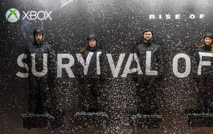 Microsoft’un oyun konsolu Xbox, Lara Croft serisinin Sibirya’da geçen oyunu “Rise of the Tomb Raider”ın Londra’ya gelişini hafif sadistik bir yolla kutladı: Yüzlerce başvuru arasından seçilen 8 Lara Croft hayranını aldı, Londra’da kurduğu açıkhava panosunun üzerinde 24 saat süreyle alıkoyarak, zorlu hava koşullarına maruz bıraktı.
