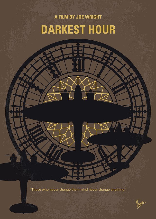 Gary Oldman’a En İyi Erkek Oyuncu ödülü kazandıran Darkest Hour’ın minimal afişinde de Londra Parlamento Binaları’nda bulunan saatin önünden geçen Spitfire uçak silüetlerini çizmiş.