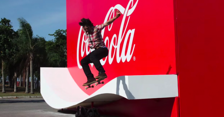WMcCann Brezilya imzasını taşıyan kampanyada; Coca-Cola ambalajlarında en az markanın adı kadar aşina olduğumuz beyaz, dalgalı şeridi kaykay rampasına dönüştürülmüş.