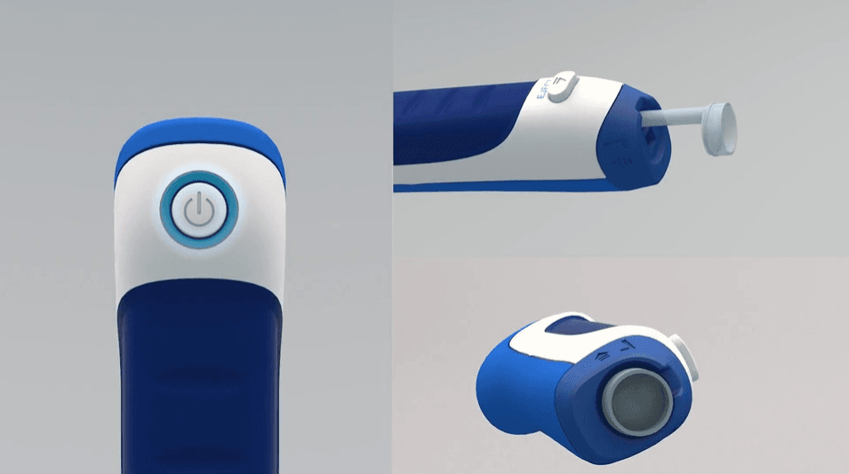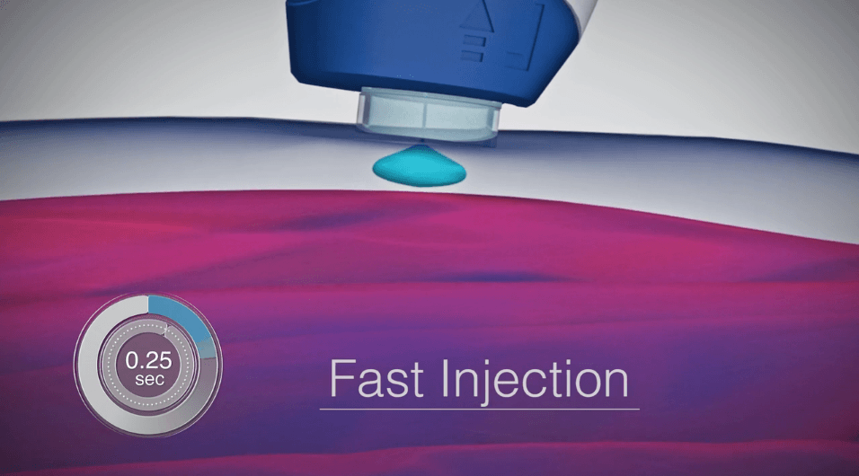 İğnesiz enjektör, hastaların kendi kendine kullanabilmesi için tasarlanmış. İlacı klasik iğneli enjektörlerden çok daha acısız bir etki yapan küçük bir piston aracılığıyla deri altına yolluyor. 7 inç’lik (17,78 cm) ve 10 ons’luk (295,7 ml) enjektör, bir ilacın çoklu dozunu (her biri yaklaşık 1 ml) içeren tek kullanımlık bir kartuşla yüklenmiş şekilde geliyor. Hasta, enjektörün ucunu karnına ya da uyluklarına doğru bastırarak düğmeye bastığında ilacı enjekte edebiliyor. Bilgisayar kontrollü bir elektrik motoruyla çalışan piston 150 mikron (0,15 mm) kalınlıkta bir ilaç jetini yaklaşık “yarım saniyede” hastanın cildinden geçiriyor. İnsanın saç telinden (0,03-0,04 mm) çok az bir parça daha kalın olan bu jet, ince oluşuyla hastada kaçınılacak denli bir acı yaratmıyor. İlaç cilde nüfuz ettikten sonra basınç kaynaklı acı da azalıyor.
