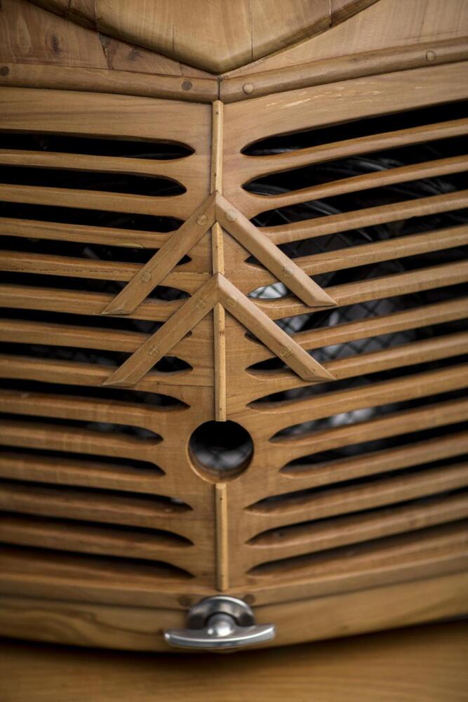 Robillard’ın elma, armut ve kiraz ağaçlarından yaptığı 2CV, Citroën’in 1948-90 yılları arasında yollarda olan en ikonik modelin ahşap bir kopyası olmakla kalmıyor, aynı zamanda 3CV modelinden alınmış motoru ve aksamıyla gayet de yolda gidebilen bir otomobil.
