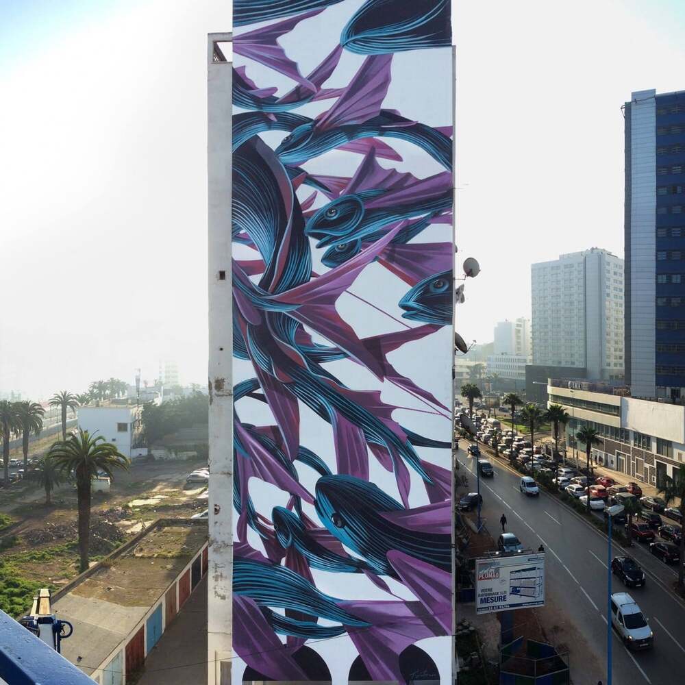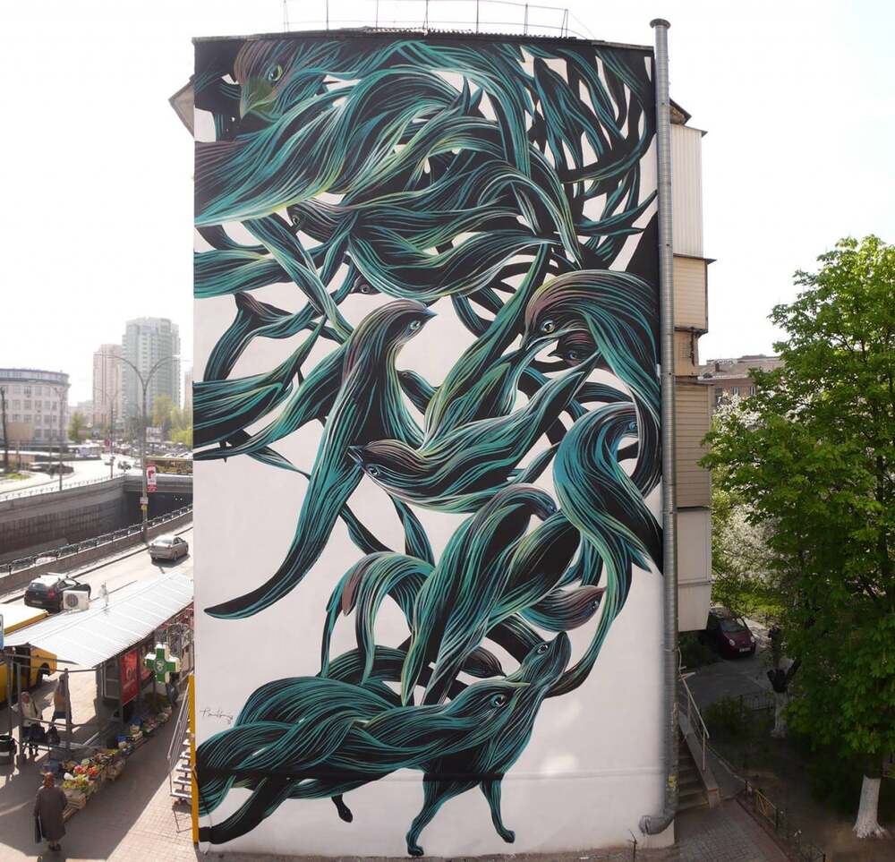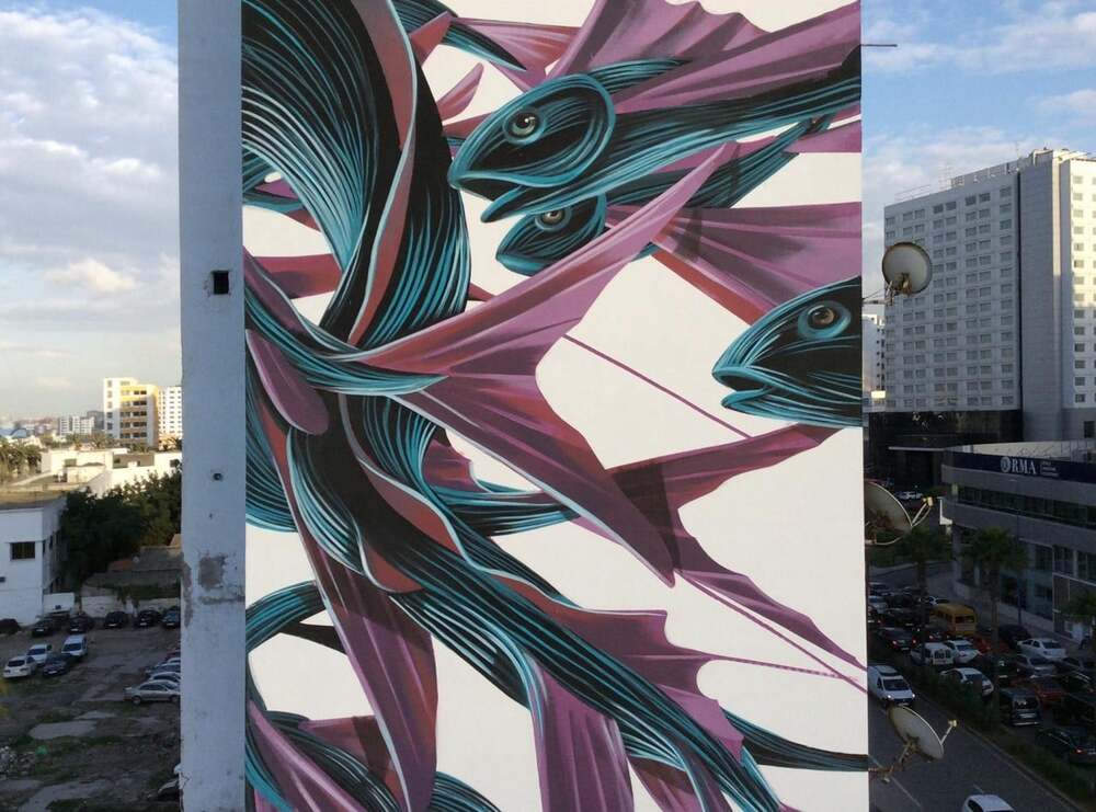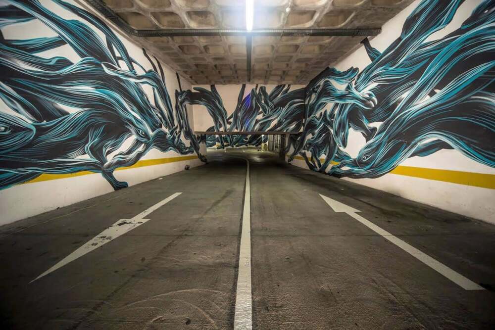 Dev kelebek koleksiyonu resimleriyle hayvan figürlerini etkili bir şekilde kullanan Mantra‘nın ardından Portekizli sokak sanatçısı Pantónio’nun hayvan figürleriyle yarattığı etkileyici murallar da dikkat çekiyor. Sanatçı, hibrit yaratık sürülerinin akışkan bir formda binalar üzerinde dolaştığı murallar yaratıyor.