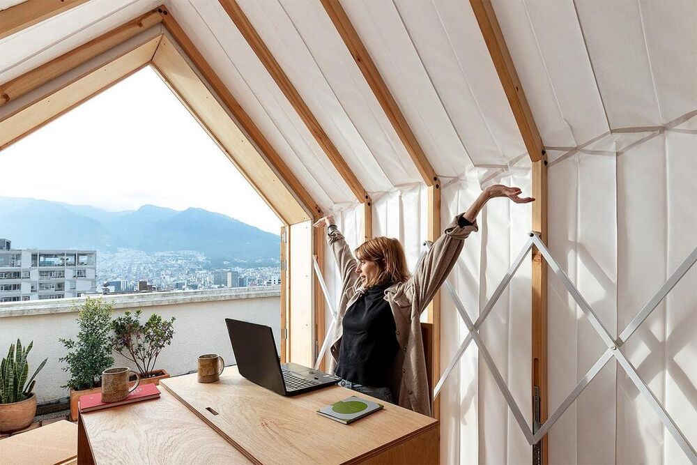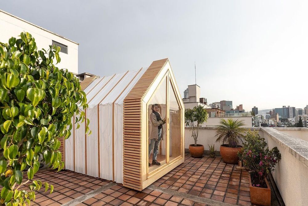 Yapı, kalıcı bir müdahaleye gerek duyulmaksızın esnek bir şekilde kullanılabiliyor. Örneğin yağmur dindiğinde IWI’yi kapatıp terasta yer açmak mümkün. Zaten IWI, Ekvador gibi sıcak ve yağışlı iklimlere sahip bölgelerde; teras, bahçe gibi alanlarda kullanılmak üzere tasarlanmış. Dört kişiyi rahatça barındıracak şekilde genişleyebiliyor.