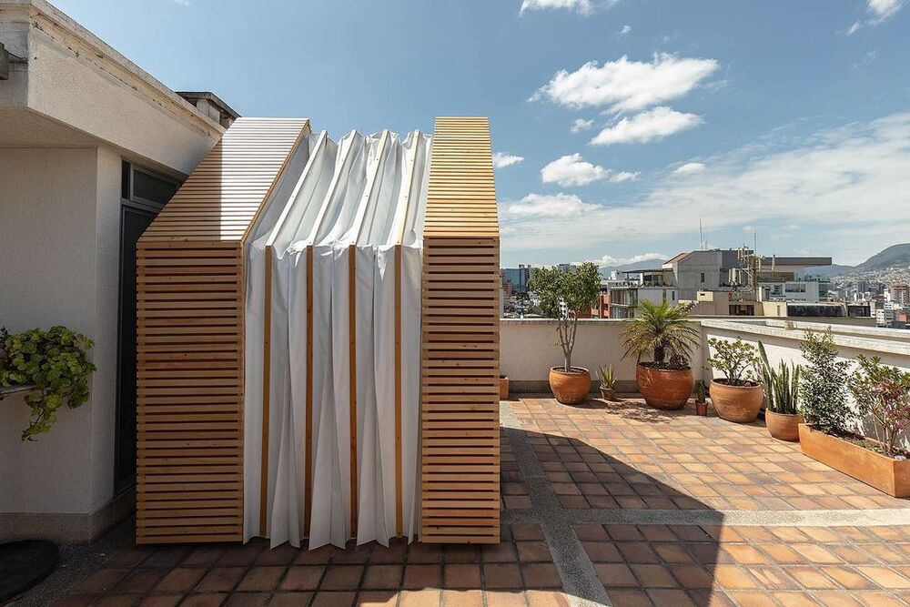 Yapı, kalıcı bir müdahaleye gerek duyulmaksızın esnek bir şekilde kullanılabiliyor. Örneğin yağmur dindiğinde IWI’yi kapatıp terasta yer açmak mümkün. Zaten IWI, Ekvador gibi sıcak ve yağışlı iklimlere sahip bölgelerde; teras, bahçe gibi alanlarda kullanılmak üzere tasarlanmış. Dört kişiyi rahatça barındıracak şekilde genişleyebiliyor.