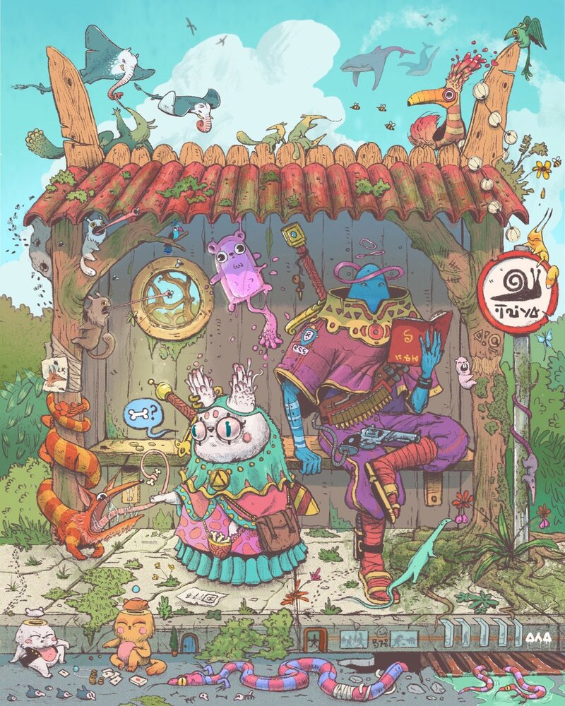 Evren, orman ve hücre gibi karmaşık yapılardan ilham alan illüstrasyonlarıyla Bang Sangho, hem renk paleti hem de tuhaf karakterleri sayesinde unutulmaz keşiflerimizden biri olmuştu. Benzer bir fantastik yaklaşım da Marija Tiurina’dan gelmişti. Tiurina, Mind the Gap ile Londra’daki sokak yaşamının yer üstü ve yer altı katmanlarını tuhaf ama cezbedici evrene dönüştürmüştü. Alex Heywood da bu iki çizeri anımsatan yaratıcılık dozu yüksek bir isim olarak keşiflerimiz arasındaki yerini alıyor.