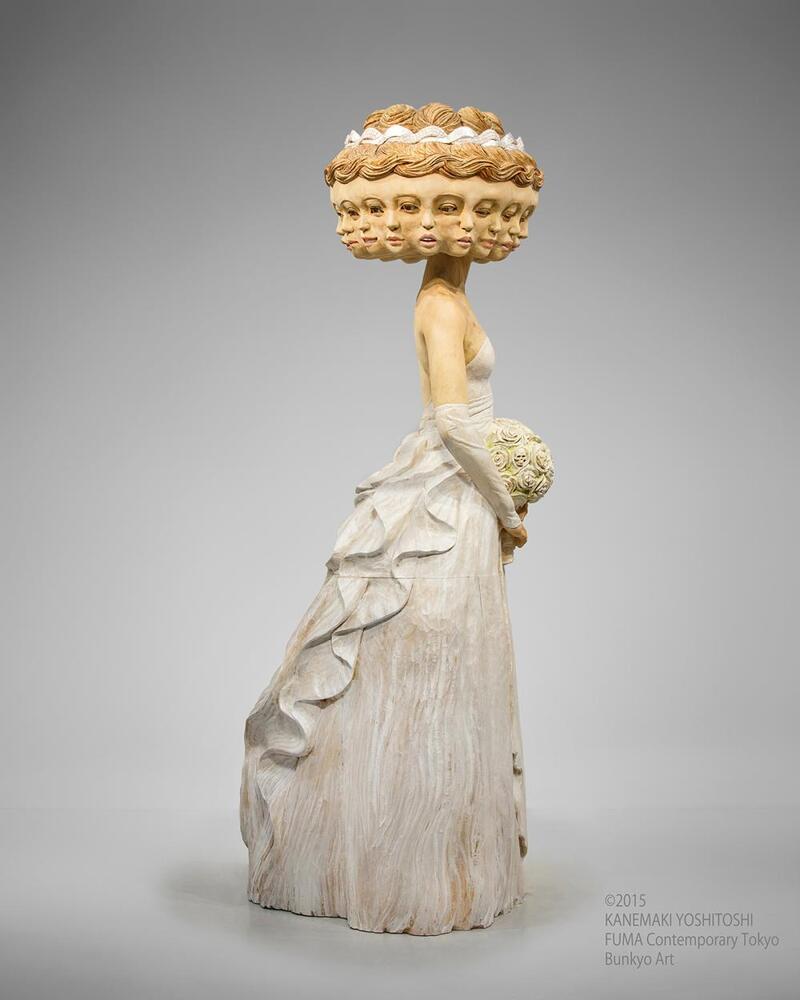 Heykeller, paralel evrenlerde yaşayan farklı kişiliklerin tek bir bedende birleşmiş hali gibi görünüyor. Kanemaki’nin işlerinde hakim olan bu bozulma estetiği, figürün bedeninde tek bir noktaya yoğunlaşmasıyla ortaya çıkıyor. Bir hareketin ya da değişken ruh halinin yalnızca kafaya, yalnızca gözlere, yalnızca ağıza veya yalnızca belden yukarısına sayısal artış olarak yansıdığı, bedenin geri kalanının ise aynı kaldığı görülüyor. Bu durum, figürlere aynı zamanda absürt hatta psikopat bir hava katıyor. Örneğin gelin figürü bazı açılardan bakıldığında mutlu ve neşeli, bazı açılardan bakıldığında ise hüzünlü veya sinsi görünüyor. Tek bir figürde birden fazla ruh halini birleştirmek ve yeni bir ruh hali yaratmak bu olsa gerek.
