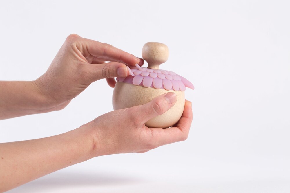 İnsanın içini ısıtan, nazik bir görünüme sahip olan cilalı akçaağaç ve onun tam tersi gibi görünen eğlenceli renk ve dokulardaki silikon dolgular oyuncakların ana malzemeleri. Örneğin sevgi bebeği, kuş tüyü desenlerine benzer yumuşak bir pembe yakaya sahip. İnsanda dokunma hissi yaratan bu görüntüsüyle Nusboim’e göre insan dokunuşunu ve bir dokunuşa özlemi, temsil ediyor. Gövdesi küre şeklinde olan oyuncak beklenmedik bir şekilde ağır. Bu da stabilite duygusuyla bağlantı kuruyor.