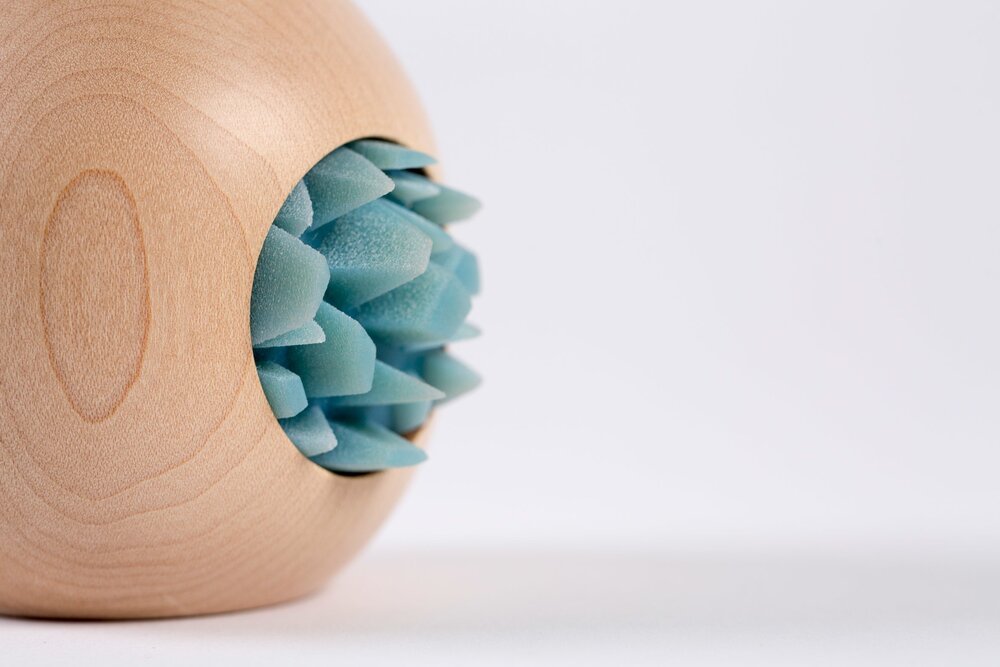 Kırmızı silikon dikenleri olan bebek ise öfke bebeği. Dikenler, sert ahşap bedenin içinde sıkıştırılmış ve bastırılmış ancak dışarıya sızmak isteyen öfkeyi temsil ediyor. Nusboim’e göre malzemelerdeki zıtlık, bebekler gibi çocukların da hem olumlu hem de olumsuz deneyimlerle var olduğunun ve bunda yanlış bir şey olmadığının anlaşılmasına yardımcı oluyor.