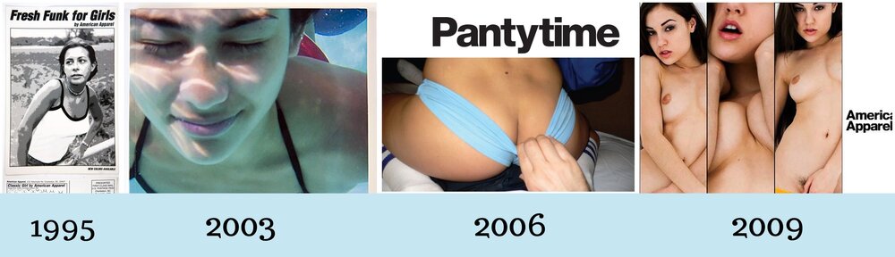 American Apparel, yıllardır seksiliği abartılı bir şekilde ön plana çıkaran kampanyalar yapan bir marka. Hatta seksiliğin dozu her geçen yıl daha da arttırarak ilerletiyorlar. Esquire Magazine, American Apparel’in yıllar içerisinde nasıl bir evrim geçirdiğini reklamlarının üzerinden bir zaman çizelgesi çıkartarak özetlemiş hatta. Derlemeyi de incelediğinizde de göreceğiniz üzere, marka utangaç ve normal bir cinsellik algısıyla başlayıp giderek çıplaklaşan ve çarpıklaşan bir yapıya evriliyor.