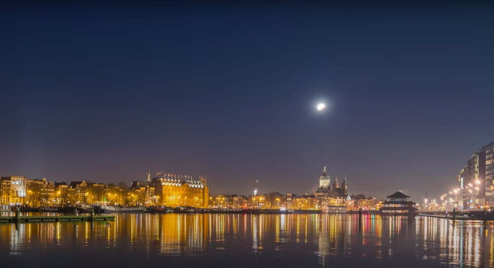 Kırgızistan ve Antarktika gibi yerlerde de çekim yapan Dros kendi memleketi Amsterdam’ı iki yıl boyunca çektiği görüntülerle kayıt altına alıyor. COVID-19 öncesinde başlayan projesi pandemi sürecinde de devam ediyor ve nihayete eriyor. İki yıl boyunca mevsimlerin geçişleri, kentin değişimi hatta şehrin üzerinde yükselen bir ay tutulması kayıt altına alınan görüntüler arasında yer alıyor. Güzellik, akış ve duygu ile görsel bir ziyafet sunan Albert Dros şehrin aynı noktalarında yaptığı çekimlerle zaman içinde gerçekleşen küçük değişimleri de kayıt altına almış oluyor.