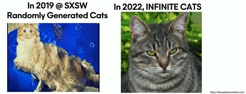 Birkaç yıl önce henüz emekleme ve gelişme aşamasında olan yapay zeka şu anda gerçekliğe bakış açımızı değiştiriyor. 2012 yılında bir yapay zekayı kedileri tanıması amacıyla eğitmek için 10 milyonun üzerinde YouTube videosu ve 14 binden fazla işlemci sayısı gerekiyordu. Bugün artık yapay zeka Generative Adversarial Networks (GAN) sayesinde örnekler üzerinden gerçeğinden ayrılmayacak kedi görselleri üretebiliyor. Kedi örneği bir kenara geçtiğimiz yıl yapay zekanın veriye ya da metne göre ne denli farklı görseller üretebildiğini 2021 yılı derlememizde biz de ele almıştık.