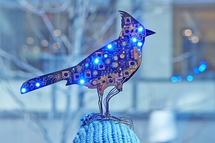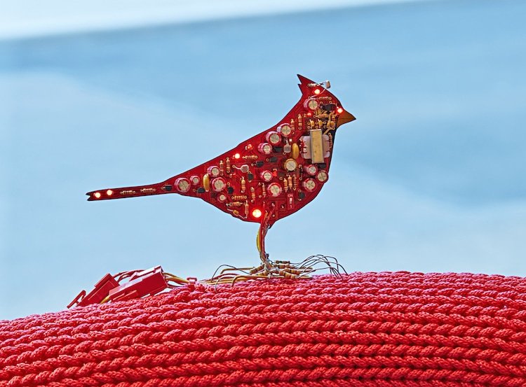 Bu yarı saydam dinamik kuş heykellerini oluşturan devreler, aynı zamanda kuşların şarkı söylemesi, ötmesi ve kanat çırpması ile senkronize olabilen dinamik ışıklandırmaları kapsıyor. Hali hazırda New York’un Manhattan West bölgesindeki Circuit Garden’da sergilenen işler arasında analog devreden yapılmış kuşların yanı sıra, gerçek bir ağustos böceğine benzeyen farklı dinamik heykeller görmek de mümkün.