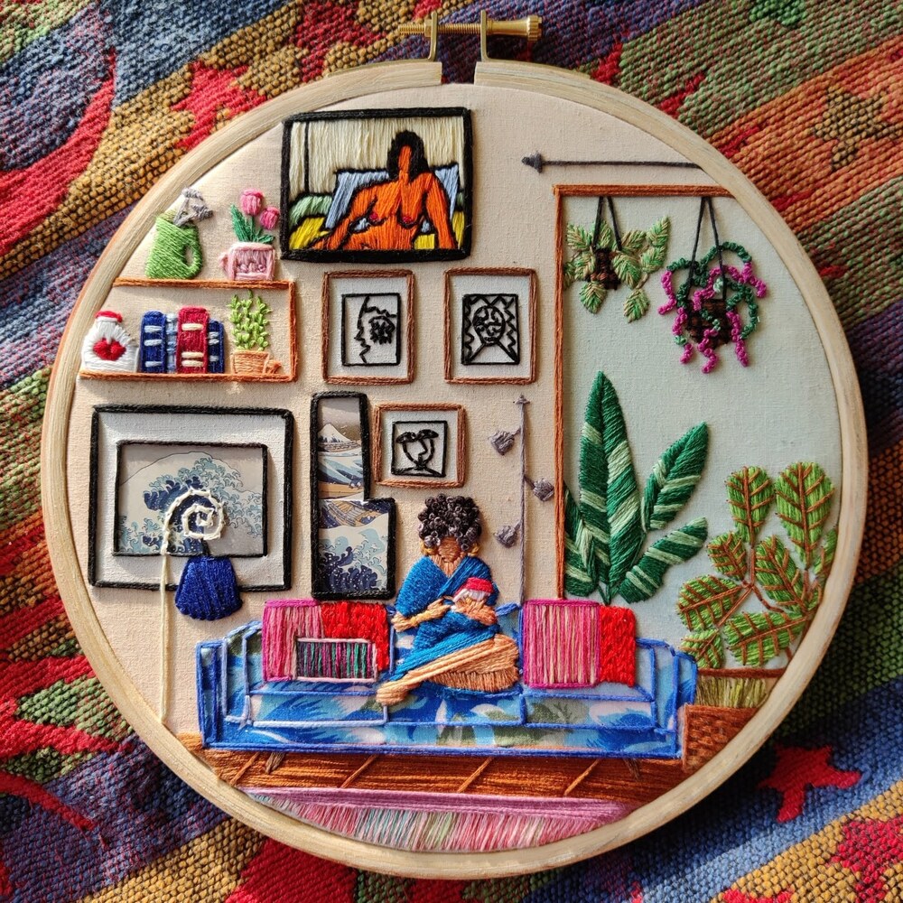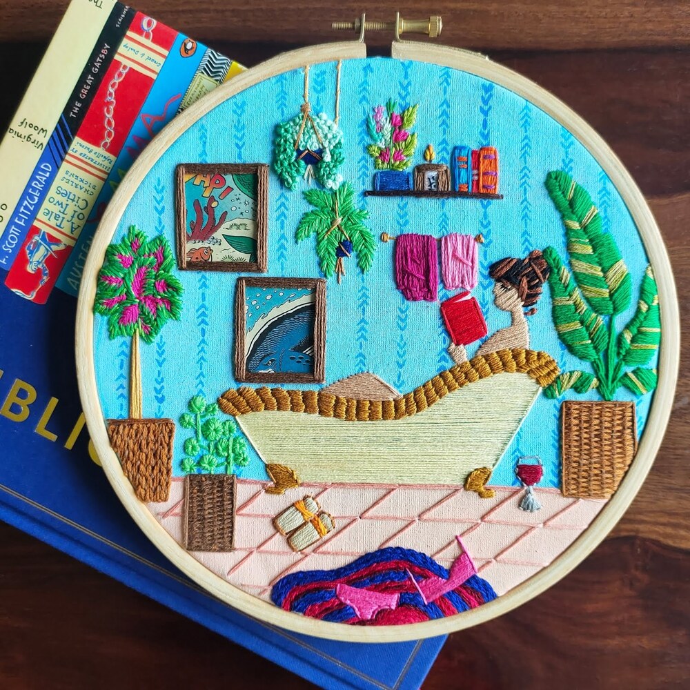 Anuradha Bhaumick nakışlarında, evde olmanın sağladığı küçük mutlulukları hatırlatıyor