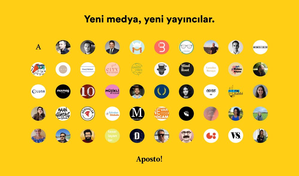 Şu anda 5 milyonun üzerinde e-posta atan platform 50’den fazla yayıncısıyla hizmet veriyor. Geçtiğimiz kasım ayında birinci yılını dolduran Aposto!, 2020’nin Aralık ayında kapısını bağımsız içerik üreticilerine de açtı. Kuruluşundan itibaren teknolojisini bağımsız içerik üreticilerine açmayı hedefleyen platform bünyesine kattığı bağımsız içerik üreticileriyle entelektüel üretimin sürdürülebilir destekçilerinden biri olmayı hedefliyor.