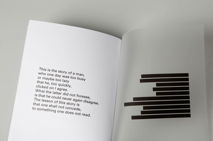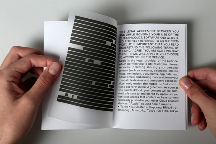 Florence Meunier tarafından hazırlanan proje de Apple’ın iCloud servisinin basılı kopyasına yerleştirilen kartlarla sözleşmeyi anlaşılır hale getiriyor. iCloud, yaşadığı sızıntıyla güven problemi yaşayıp ünlü isimlerin özel fotoğraflarının sosyal ağlarda yer almasına neden olmuştu.