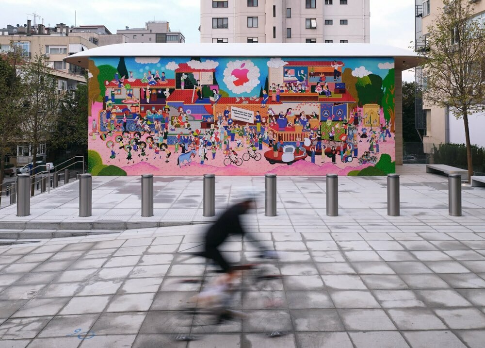 Apple, Bağdat Caddesi’ndeki mağazasının yakında açılacağını duyururken bu açıklama ile birlikte Murat Palta tarafından özel olarak hazırlanmış renkli eserin açılışa kadar mağazanın dışını süsleyeceğini duyurdu.