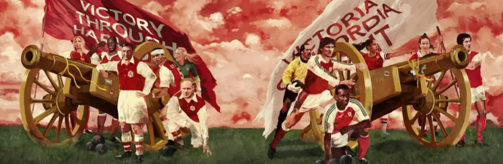 En dikkat çeken parçalardan biri, “Başarı uyumdan doğar” anlamına gelen ve kulübün armasında yer alan mottosu Victoria Concordia Crescit. Kulübün efsane 12 oyuncusunun bulunduğu eserde yer alan savaş topları, kulübün Royal Arsenal silah fabrikasında çalışan kurucularına atıfta bulunuyor. Topçılar lakabıyla anılan kulübün yeni stadyumunun önünde de bir savaş topu heykeli bulunuyor.