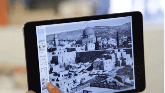 Harvard Üniversitesinde eğitim alan iki Filistinli öğrenci Asma Jaber ve Sami Jitan, artık göremedikleri bu tarihi görüntüleri gerçek zamanlı yaşamak için bir uygulama geliştirmiş. PIVOT isimli proje telefon kamerasından manzaraya bakıldığında bugünü değil dünü gösteriyor. Üniversitelerinin tarihi dökümanlarından ve akademik çalışmalardan faydalanan girişimciler aynı zamanda kullanıcılarının katılımını da destekliyor ve kamusal kullanımı olan tarihi görüntüleri uygulamaya dahil eden bir modül sunuyor.