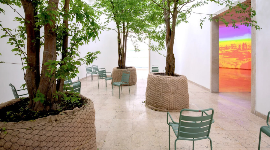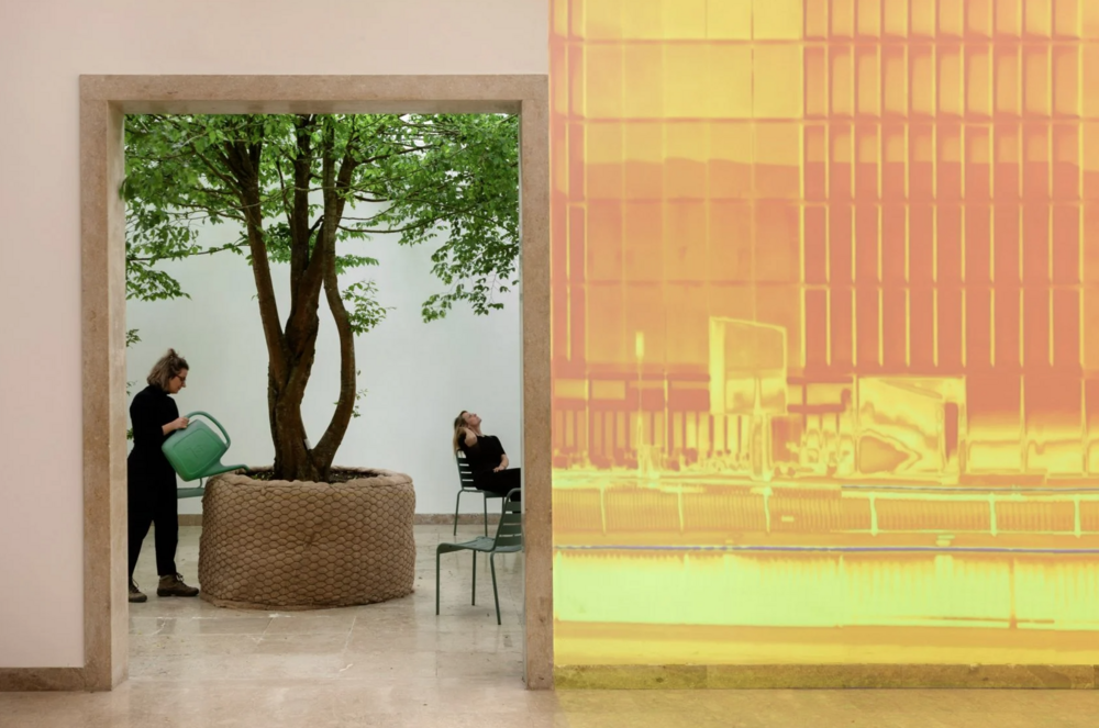 Stres odasının tam karşısında, küratörler şehirlerin sıcaklığını azaltmak için kullanılabilecek stratejileri göstermek için sakin bir stres atma odası yaratmış. Aydınlık alan, büyük beyaz saksılarda üç adet yaygın gürgen ağacı içeriyor. Bu ağaç türleri, fırtınaya ve kuraklığa dayanıklılıkları nedeniyle seçilmiş.