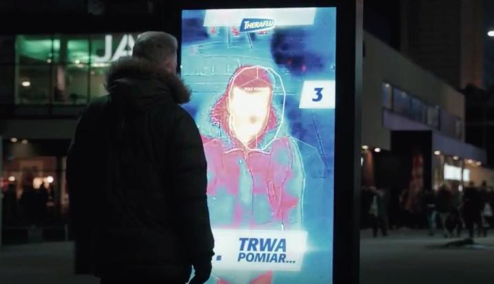 GlaxoSmithKline’ın soğuk algınlığı ilacı Theraflu için hazırlanan açıkhava kampanyasında karşısında duran kişinin ateşi olup olmadığını anlayan bir açıkhava panosu tasarlandı. Varşova’da bir alışveriş merkezinin önünde duran interaktif pano, termal görüntüleme ile karşısında duran kişinin ateşini tespit eden termo tarayıcı kameralarla donatıldı. Panonun karşısına geçenler, karşılarındaki ekranda kendi silüetlerini vucut ısılarını gösteren sarı ve kırmızı renklere bürünmüş halde gördüler.