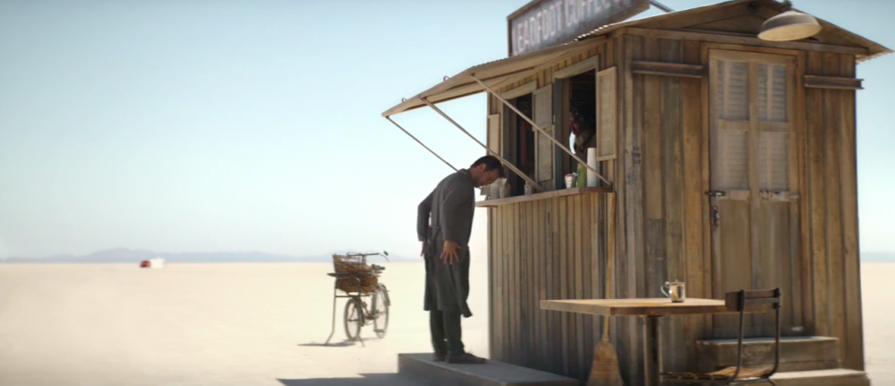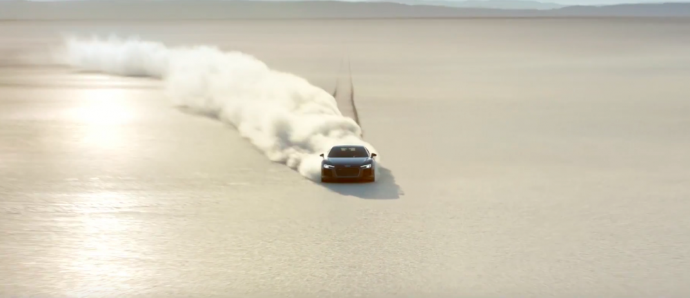 Eve girdikten sonra eşinin kahve bittiğini söylemesiyle, son model, siyah renkli R8’in anahtarını kaptığı gibi garajdaki otomobilin direksiyonuna geçiyor. Motoru çalıştırdığında aldığı keyif ise yüzünden okunuyor. Son sürat yol alarak soluğu yine çölün ortasındaki derme çatma bir kahve dükkanında alıyor. Satın aldığı kahvenin parasını ödemek için elini cebine attığında ise cüzdanını evde unuttuğunu fark ediyor. O sırada toz bulutunun arasında kırmızı bir Audi R8 daha beliriyor…