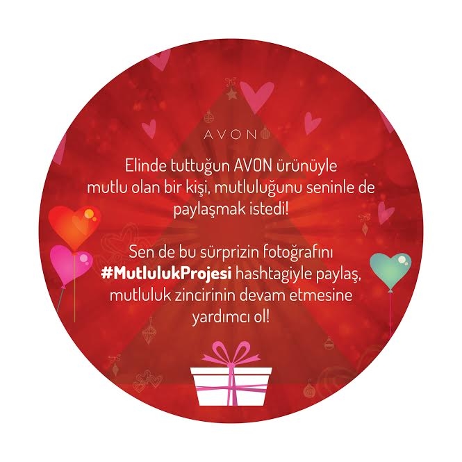 Avon Mutluluk Projesi adını verdikleri kampanya dahilinde blogger’lara Avon ürünlerinden oluşan yılbaşı süslü paketler gönderen marka, onlardan bu paketleri geçtikleri herhangi bir yere bırakmalarını istemiş, bu bir kafe de olabilir bir kuaför salonu da bir butik de.