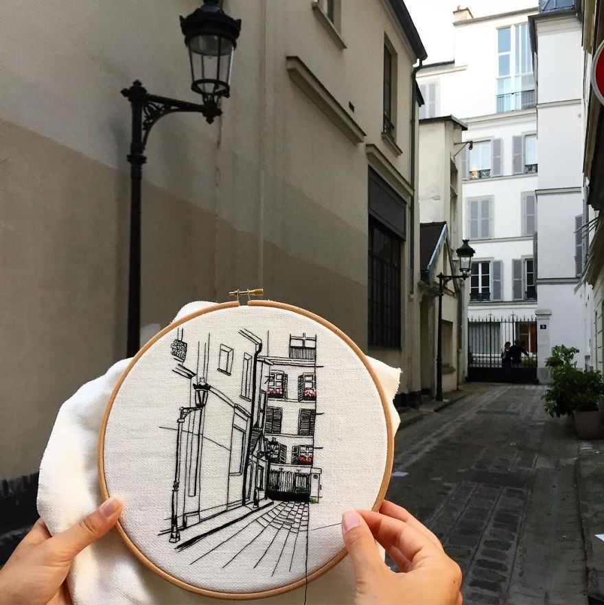 Bu yıl 14 Şubat’ta, Fransız-İsveçli tekstil sanatçıları Charles Henry ve Elin Petronella çiftiyle tanıştırmıştık sizleri. Birbirlerine hem hayat arkadaşı hem de sanat ortağı olan çift, beğendikleri mimari yapıları nakışla yorumluyor, Avrupa seyahatlerini bu şekilde ölümsüzleştiriyordu. Charles ve Elin, bu mimari nakış çalışmalarına yenilerini eklemeye devam ediyor.