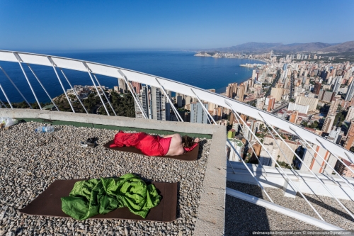 1 ay sürecek ve bu 12 Avrupa şehrini çatılardan, gökdelenlerin tepesinden, en yüksek noktalardan görecekleri degişik turizm aktivitesi telekomünikasyon şirketi TELE2’ye de çok ilginç geliyor ve böylece ikili bu projeye sponsor da bulmuş oluyor. Şehirler boyunca telefonun en yüksek noktalarda, en alakasız yerlerde, yerin altinda, çatılarda çekip çekmediğine bakmak üzere anlaşıyorlar.