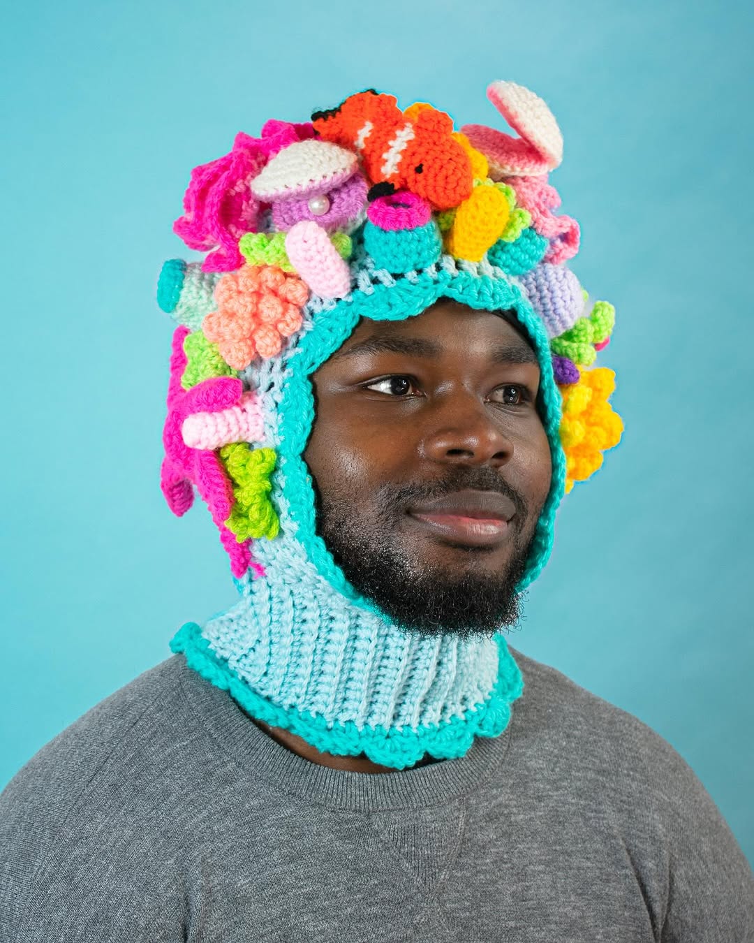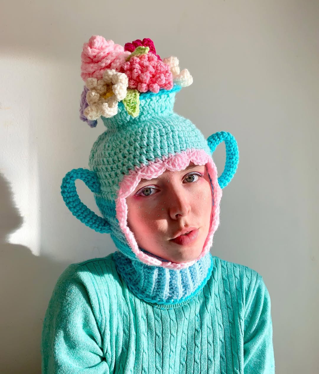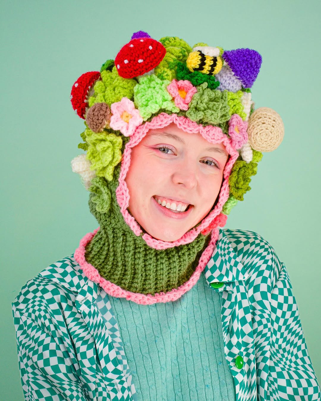 Toronto merkezli sanatçı Aynsley Grealis (Knotted Neon, Mad Hatter) tığ işi eserlerlerinde çanta ve balaklava başta olmak üzere birçok aksesuarı tuvali olarak kullanıyor. Çocukluğunda dantel ve tığ işine ilgi duyan Grealis, zamanla resime yöneliyor ve geleceğinin bu alanda olması gerektiğine inanıyor. Fakat Grealis’in kariyeri de birçok kişi gibi 2020 yılında pandemi ile rota değiştiriyor. 2020’de Ontario College of Art & Design University’de Çizim ve Resim bölümünün son senesindeyken evde geçirdiği zamanı değerlendirmek için tığ ve yüne yeniden şans vermesi yaratıcılığında yeni bir kapı da aralamış.