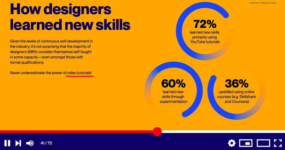 99designs tarafından paylaşılan raporda bir diğer öne çıkan başlık ise karantinanın çalışanlar üzerinde oluşturduğu olumlu etki oluyor. Freelance çalışanların yüzde 40’ından fazlası karantina sürecinin kendilerine olumlu yansıdığını ve yaratım süreçlerinin bu zaman aralıklarında olumlu etkilendiğini bildiriyor. Çocuk sahibi olan çalışanlarda ise bu oran biraz daha yükseliyor ve yüzde 48’i karantinanın sorumlulukları üzerinde olumlu etki bıraktığını söylüyor. 2019’daki raporda bağımsız çalışanların yüzde 60’ı kendilerine yeni bir mesleki beceri katarken bu yıl oran yüzde 81’e çıkıyor. Bu farkın ortaya çıkmasında karantinanın etkisi büyük. 3B animasyon, hareket tasarımı ve User Interface (kullanıcı arayüzü) tasarımı yeni becerilerde öne çıkan başlıklar oluyor.